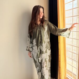 Olive Green Floral Premium 2 Pcs Co-ord Set