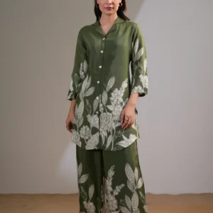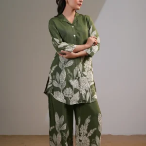 Olive Green Floral Premium 2 Pcs Co-ord Set