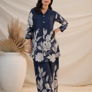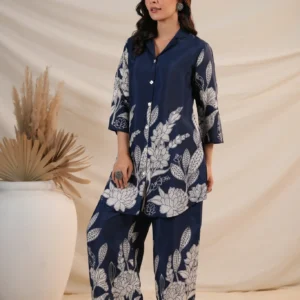 Royal Blue Floral Premium 2 Pcs Co-ord Set